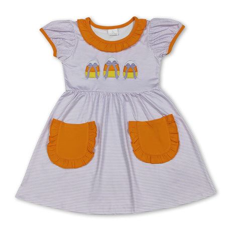 Short sleeves stripe candy corn bow baby boy Halloween romper