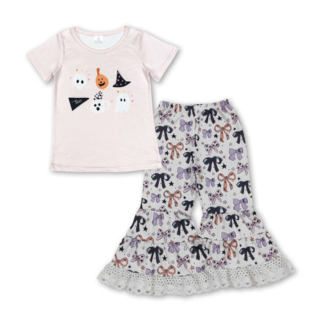 Pink black ghost pumpkin candy corn bow girls Halloween pajamas