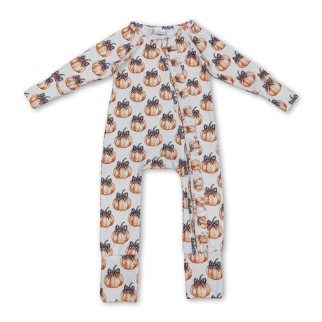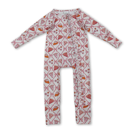 Pumpkin pie bow baby girls Thanksgiving zipper romper