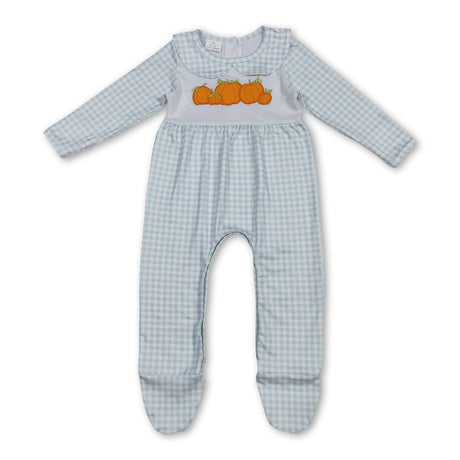 Long sleeves plaid pumpkin baby boy fall footed romper
