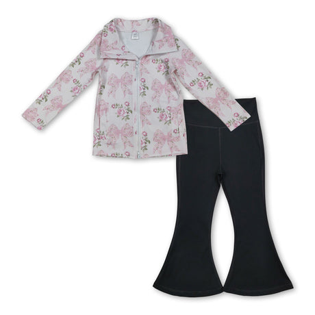 From $2500Unit price /UnavailableBlack bows zip pullover black pants girls yoga clothing set