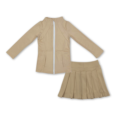From $3600Unit price /UnavailableKhaki zipper jacket pleated skirt girls activewear set