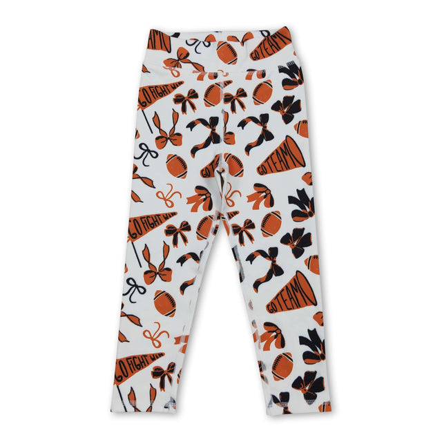 Orange bow football go team baby girls yoga leggings - 3-6M is backordered and will ship as soon as it is back in stock.