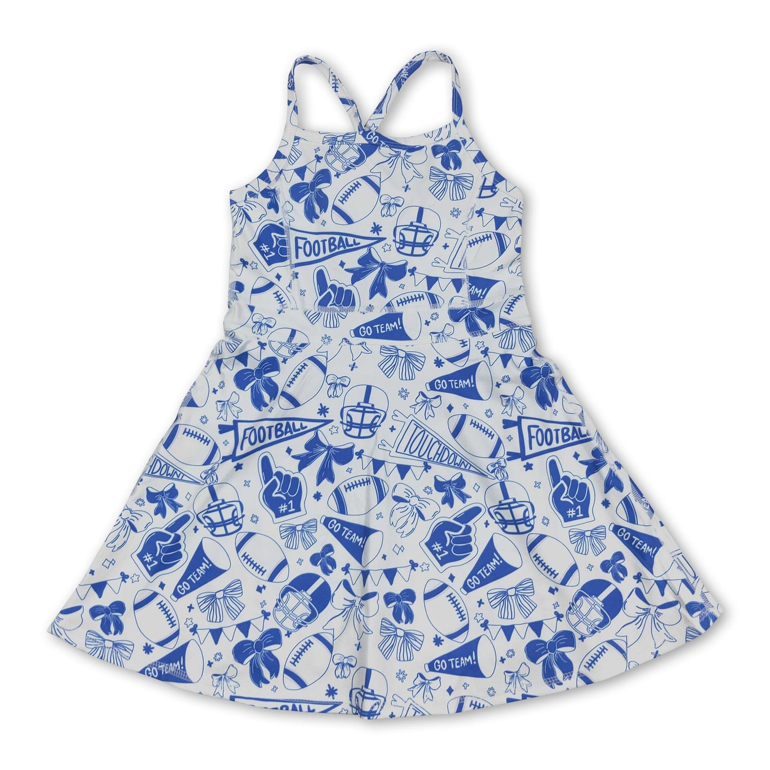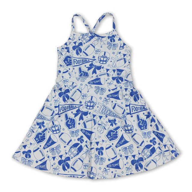 Straps blue bow football girls athletic dresses - 3-6M is backordered and will ship as soon as it is back in stock.