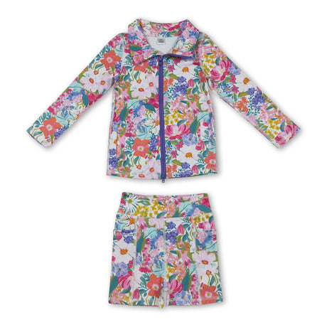 From $2100Unit price /UnavailableLong sleeves lavender floral top shorts girls activewear set