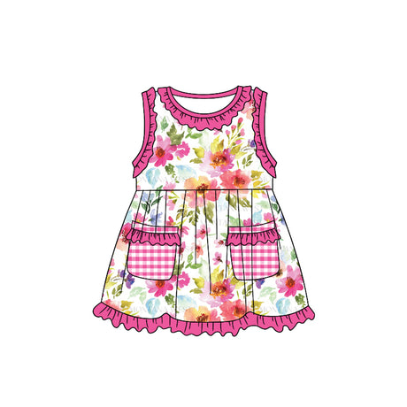 From $1200Unit price /UnavailableSleeveless hot pink plaid pockets floral girls dresses