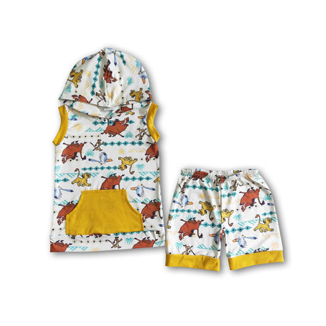 Sleeveless lion shirt shorts outfits boy summer hoodie set