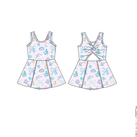 From $2000Unit price /UnavailableSleeveless pink floral bow kids girls athletic dresses