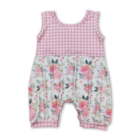 From $2200Unit price /UnavailableSleeveless pink plaid floral baby girls summer romper