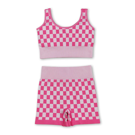 From $2200Unit price /UnavailableSleeveless pink plaid thick fabric adult women activewear