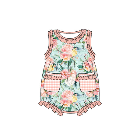 $1200Unit price /UnavailableSleeveless plaid pockets floral baby girls romper