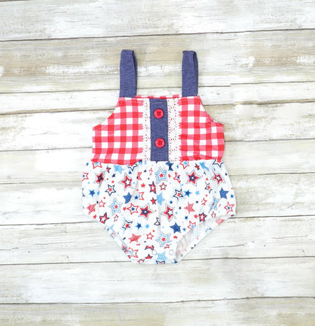 From $1800Unit price /UnavailableSleeveless plaid stars baby girls 4th of july romper