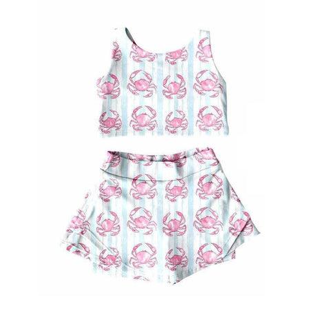 $1800Unit price /UnavailableSleeveless stripe crab top skirt girls summer activewear
