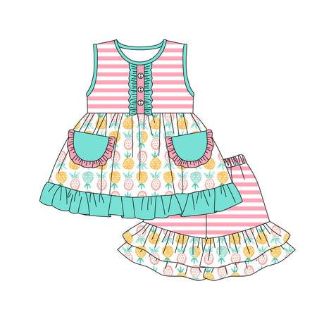 From $2500Unit price /UnavailableSleeveless stripe pineapple tunic shorts girls summer clothes
