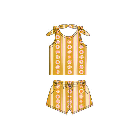 From $1800Unit price /UnavailableSleeveless yellow floral ruffle shorts girls clothes