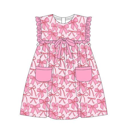 Pink pockets bows baby girls summer dresses