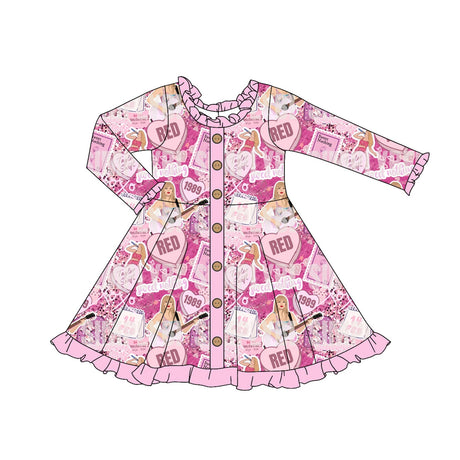 From $1900Unit price /UnavailablePink ruffle long sleeves buttons singer girls dresses