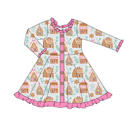 From $1700Unit price /UnavailablePink ruffle long sleeves candy house kids girls Christmas dress