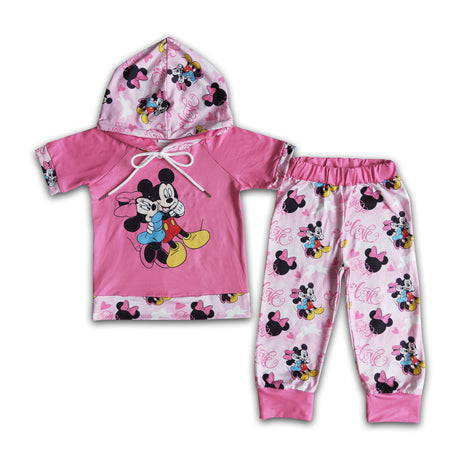 From $1800Unit price /UnavailablePink short sleeve screen print shirt mouse pants girls boutique hoodie set