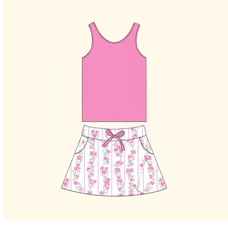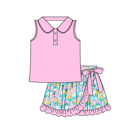 From $2500Unit price /UnavailablePink sleeveless polo top floral ruffle skirt girls clothing set
