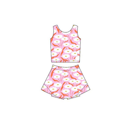 From $1300Unit price /UnavailablePink white floral sleeveless top skirt girls active set