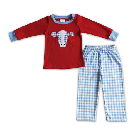 $1600Unit price /UnavailablePlaid cow embroidery shirt pants boy clothing set