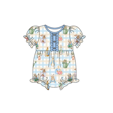 rabbit easter blue plaid baby short sleeve romper
