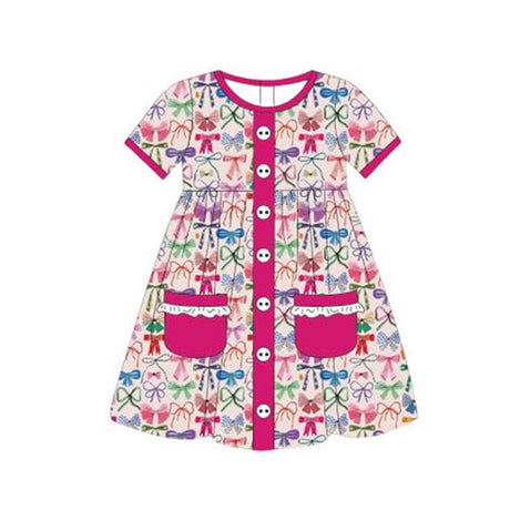 $1600Unit price /UnavailableShort sleeves hot pink pockets bow kids girls dresses