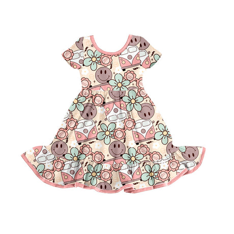 Short sleeves smile glasses floral baby girls summer dress