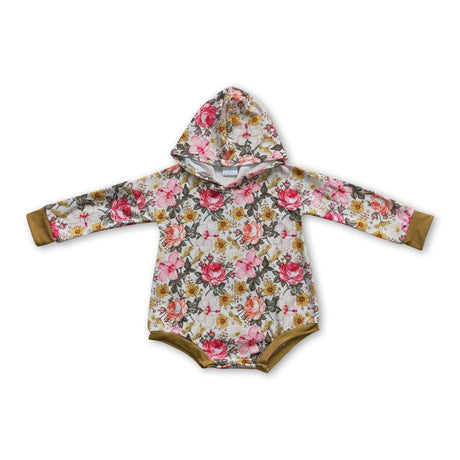 Long sleeves floral hooded baby girls fall romper