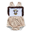 Cow embroidery plaid bubble baby girl romper - 0-3M is backordered and will ship as soon as it is back in stock.