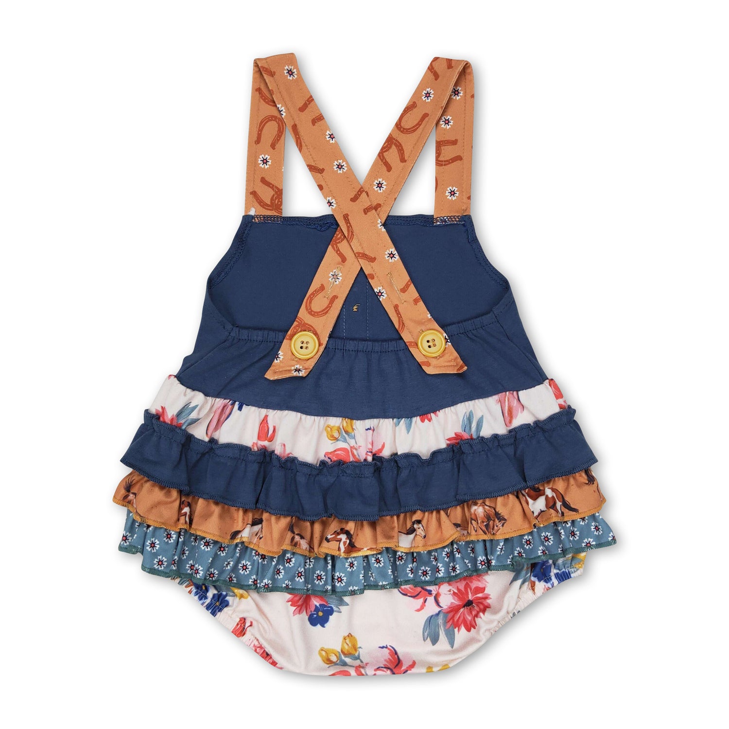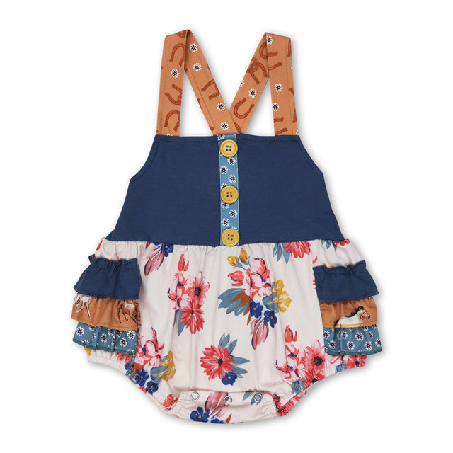 Floral horse ruffle baby girls summer romper