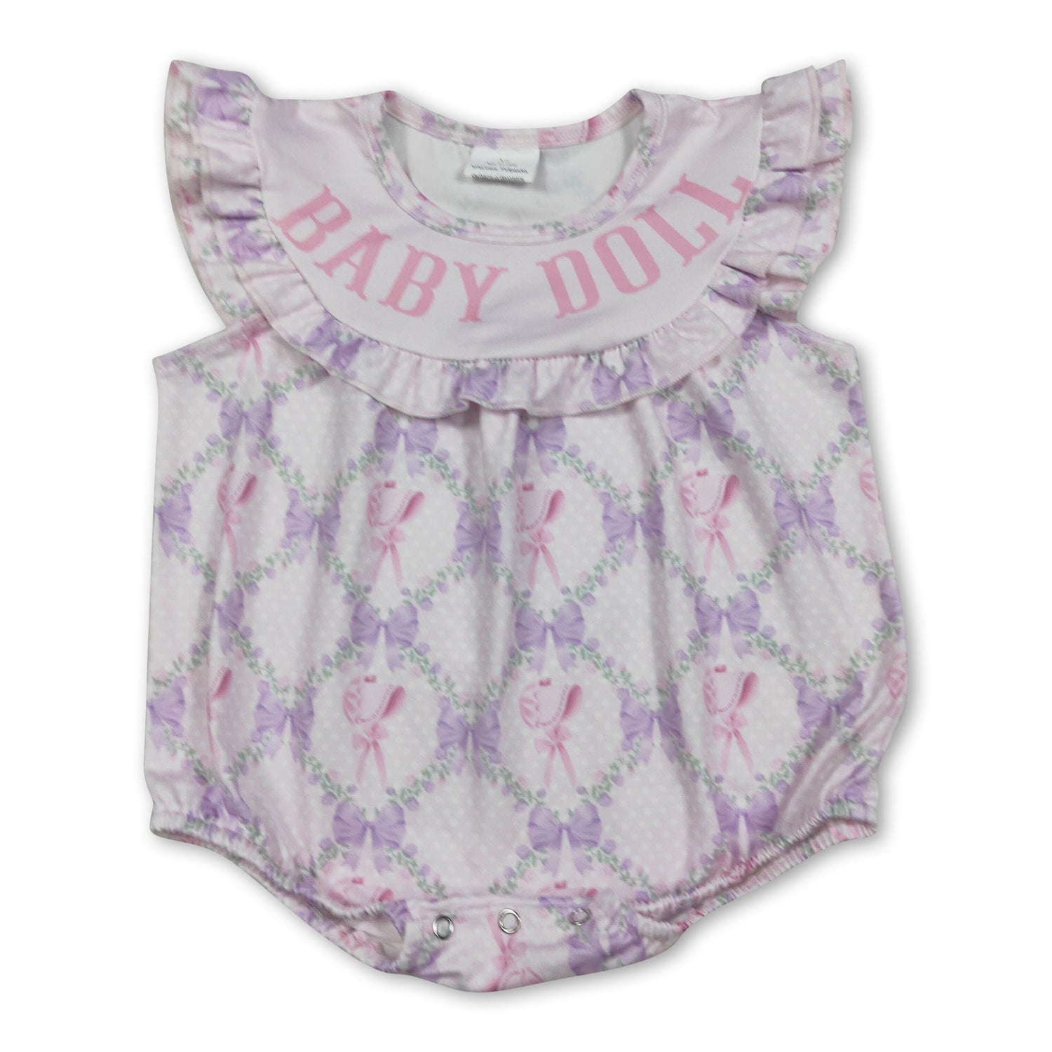 Flutter sleeves baby doll lavender bow girls romper - 0-3M is backordered and will ship as soon as it is back in stock.
