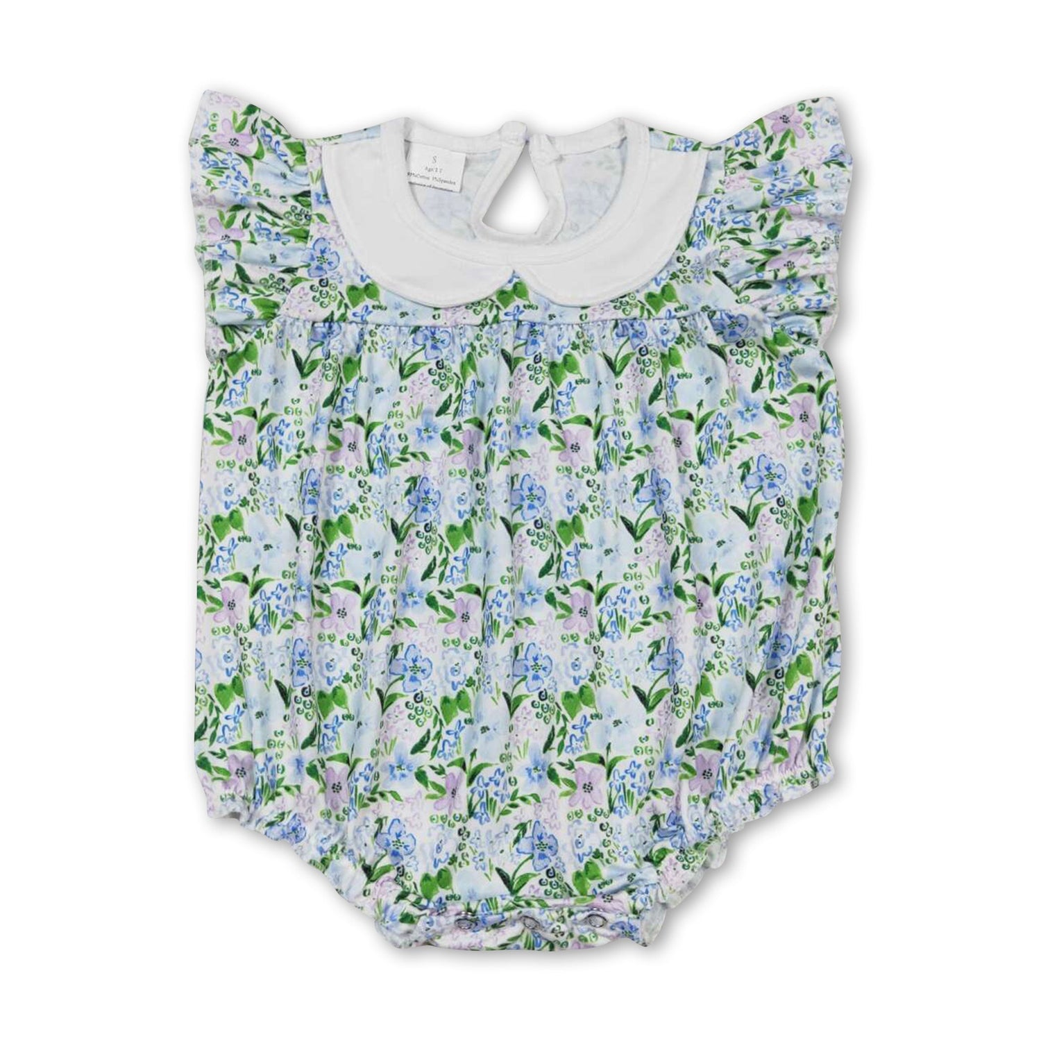 Flutter sleeves floral baby girls summer romper - 0-3M is backordered and will ship as soon as it is back in stock.