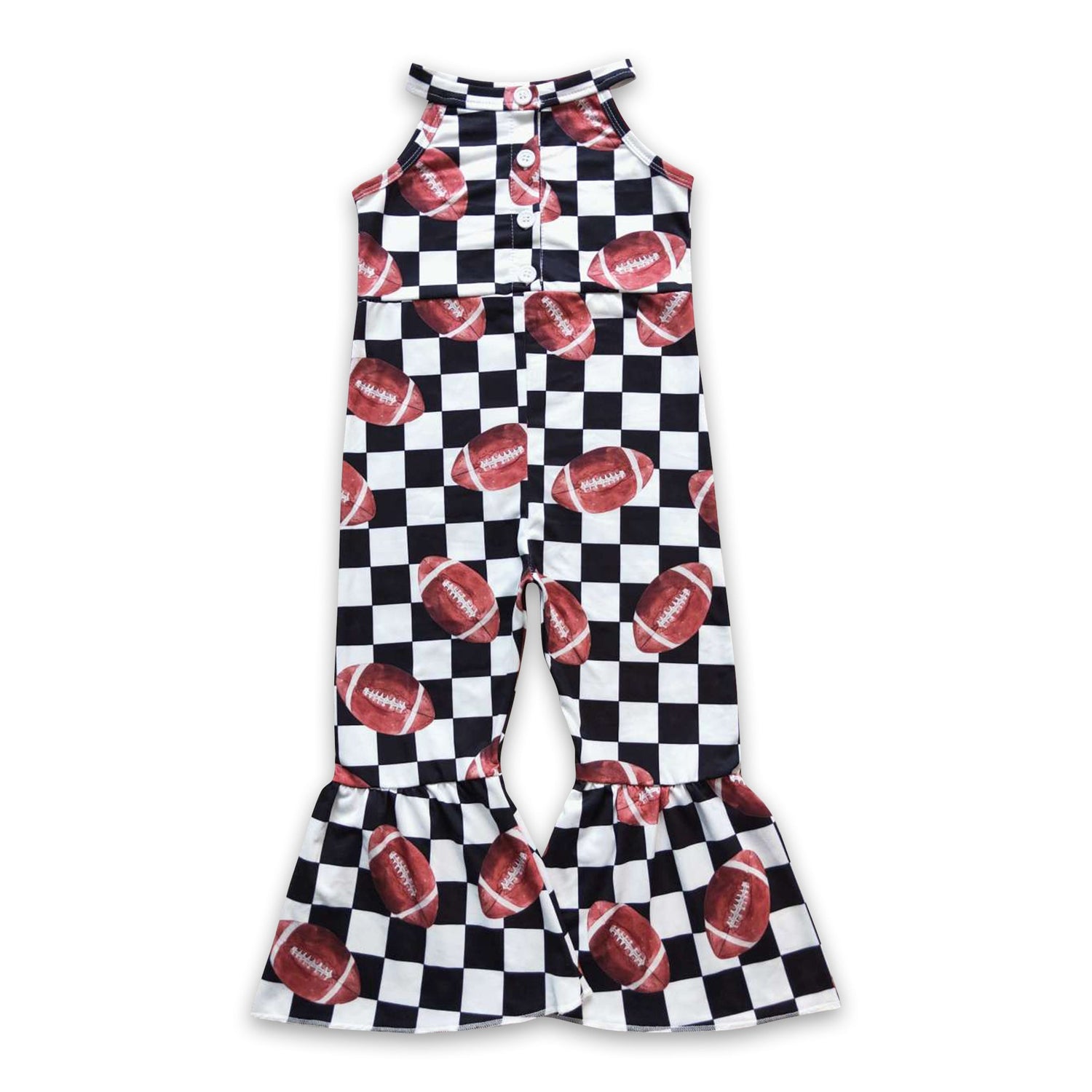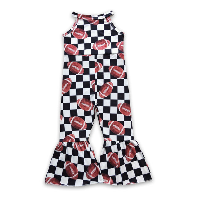 Football plaid sleeveless baby girls jumpsuit