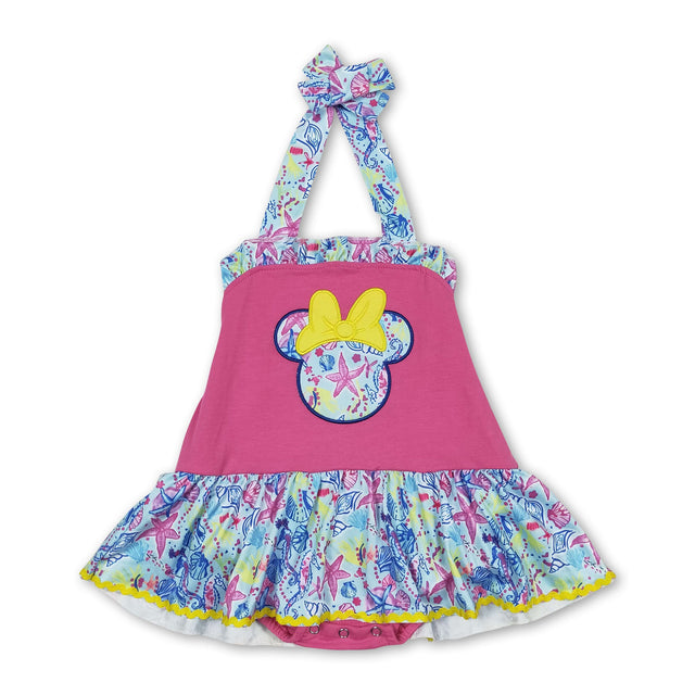 Hot pink watercolor mouse baby girls romper - 0-3M is backordered and will ship as soon as it is back in stock.