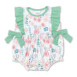 Mint ruffle floral baby girls spring summer romper - 0-3M is backordered and will ship as soon as it is back in stock.