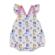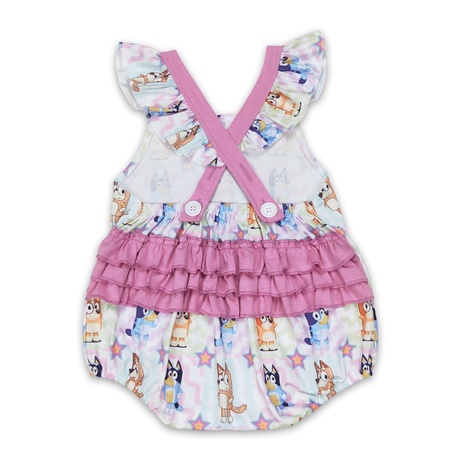 Pink flutter sleeves dog ruffle baby girls bubble - 0-3M is backordered and will ship as soon as it is back in stock.