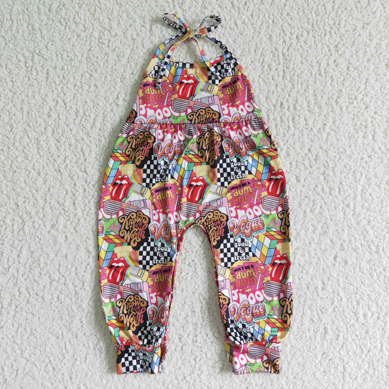 Retro tongue sleeveless jumper kids girls jumpsuit