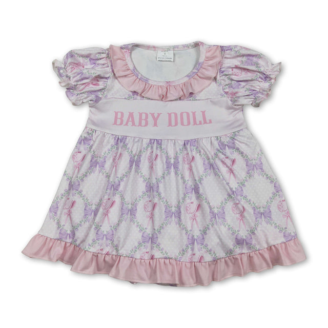 Short sleeves baby doll lavender bow girls romper