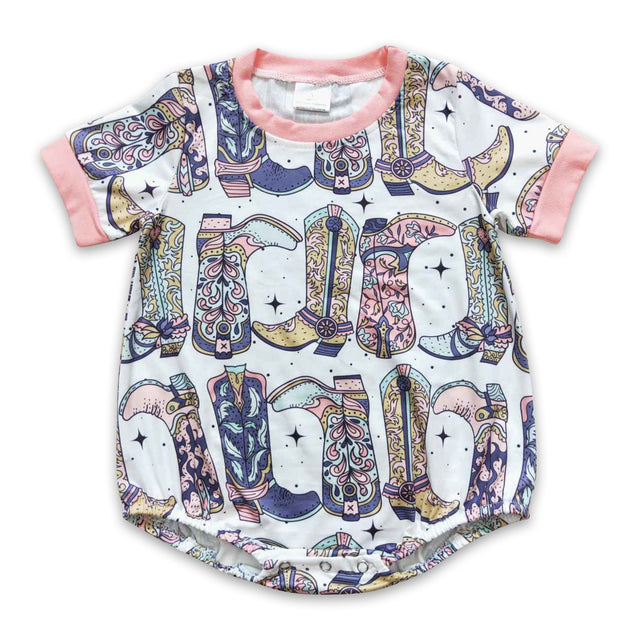 Short sleeves boots western baby romper - 0-3M is backordered and will ship as soon as it is back in stock.