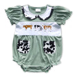 Short sleeves cow print baby girls romper - 0-3M is backordered and will ship as soon as it is back in stock.