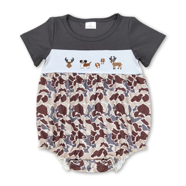 Short sleeves deer dog camo baby girls romper