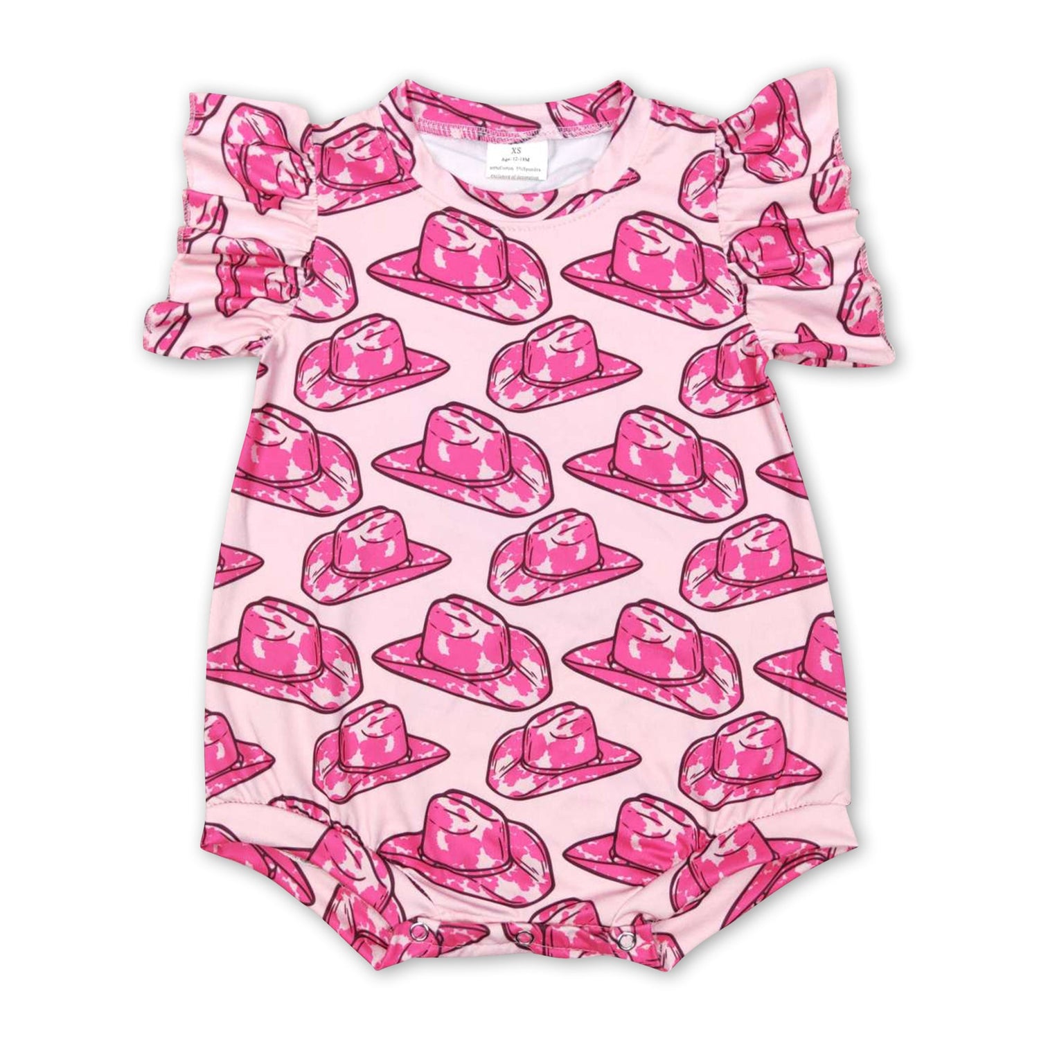Short sleeves hot pink hat baby girls western romper