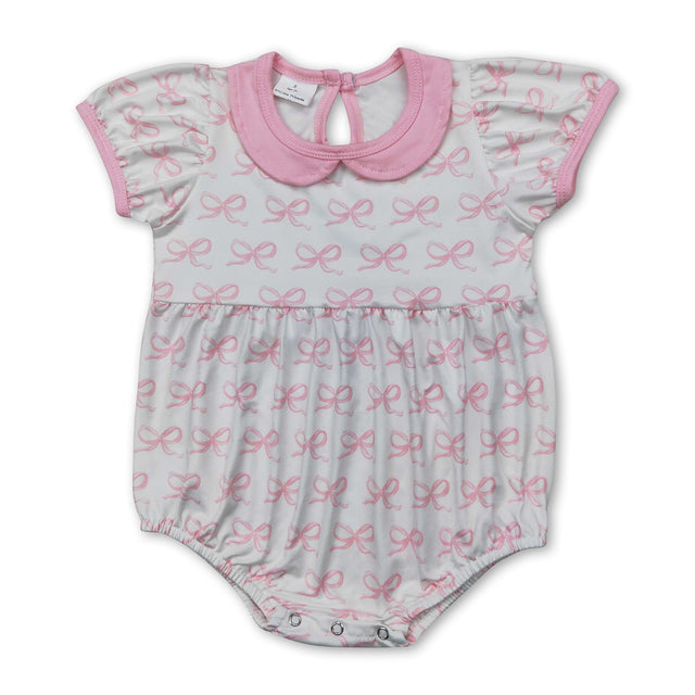 Short sleeves pink bow baby girls summer romper