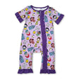 Short sleeves purple ruffle princess baby girls zipper romper - 0-3M is backordered and will ship as soon as it is back in stock.
