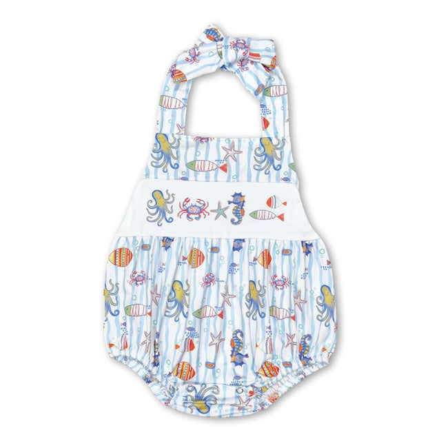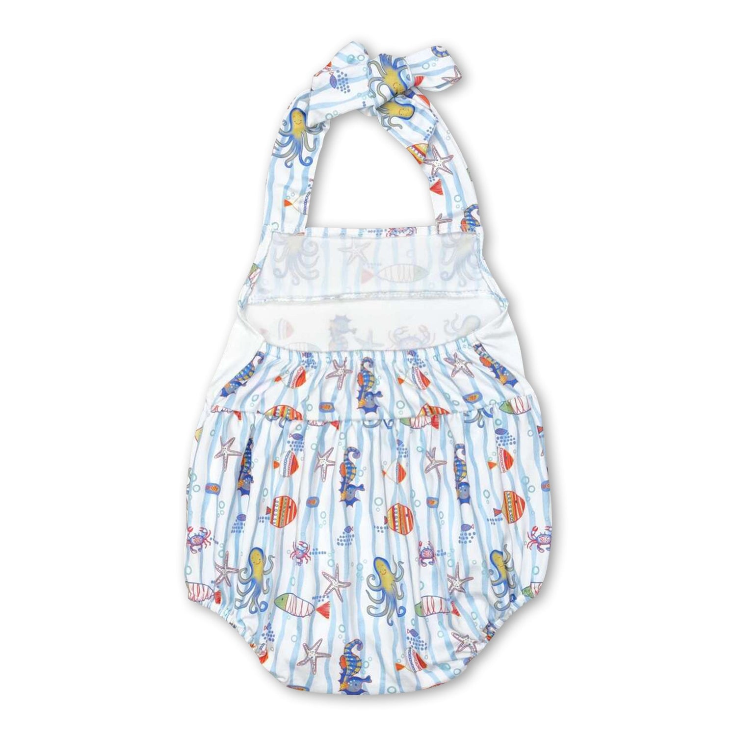 Starfish octopus fish halter baby girls romper - 0-3M is backordered and will ship as soon as it is back in stock.