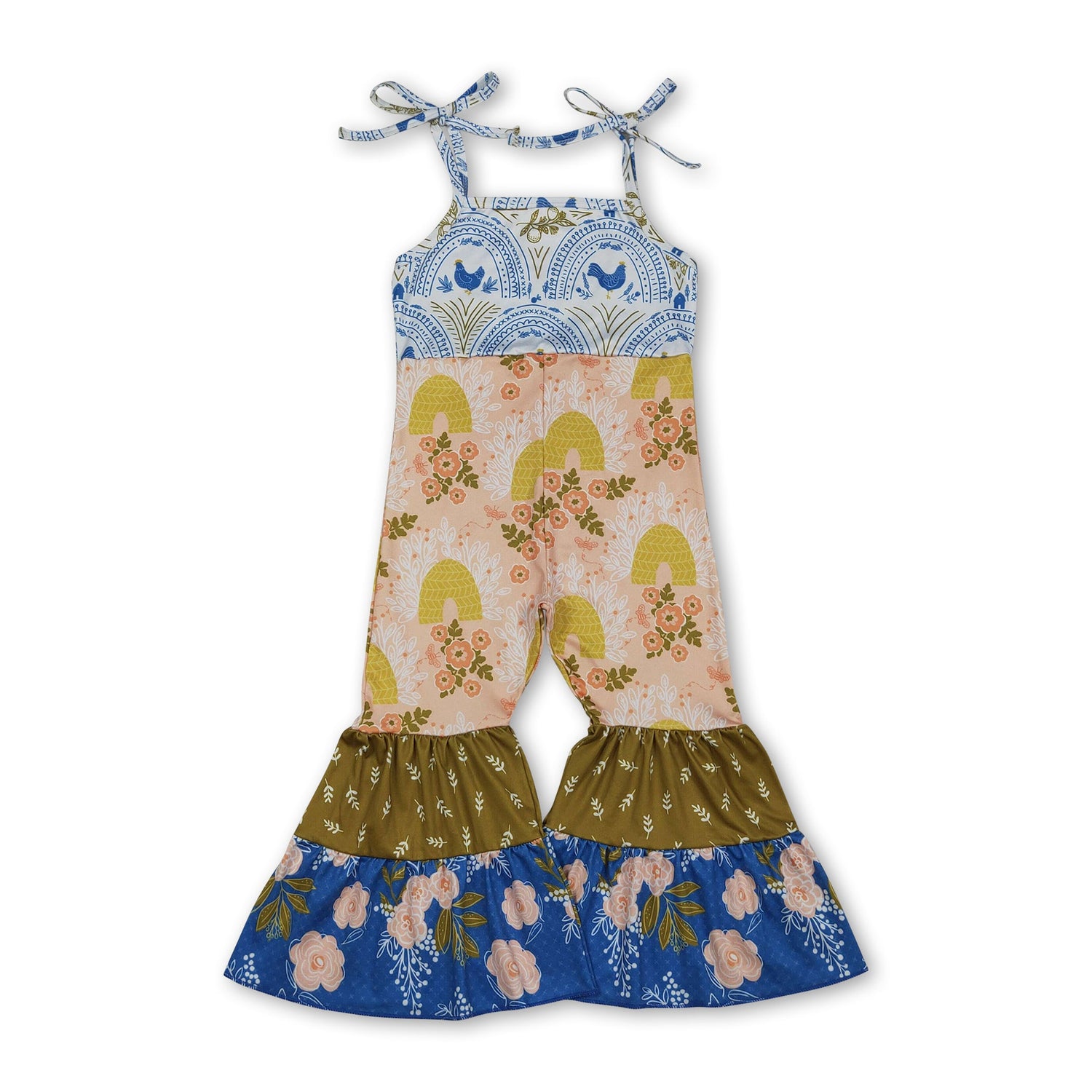 Straps chicken floral patchwork kids girls jumpsuit - 3-6M is backordered and will ship as soon as it is back in stock.