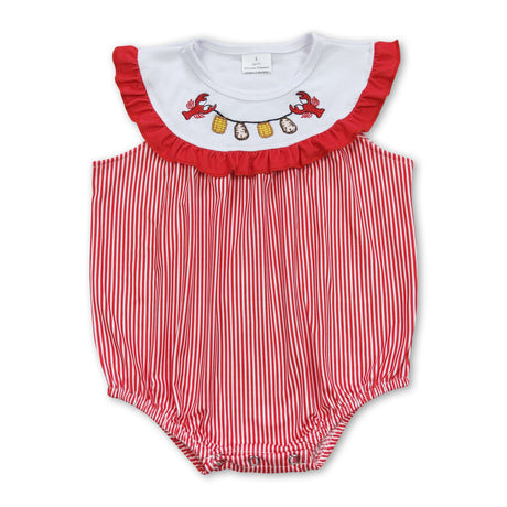 $1700Unit price /UnavailableCrawfish corn embroidery stripe baby girls romper