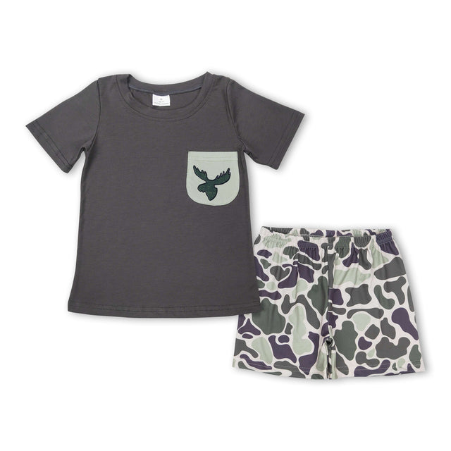 Duck pocket top camo shorts boy summer outfits - 3-6M is backordered and will ship as soon as it is back in stock.